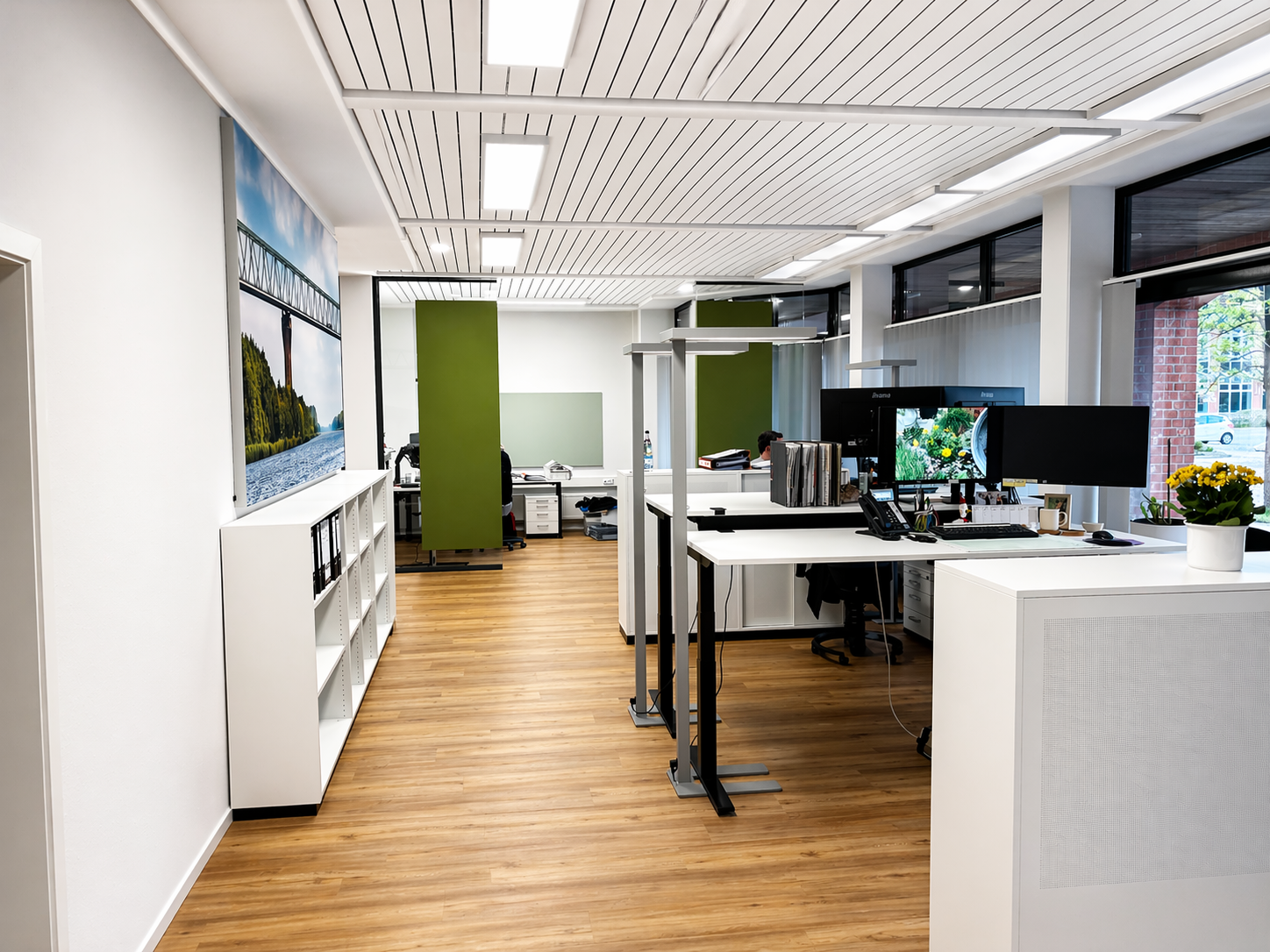 Die Sanierungsarbeiten an unseren Büroräumen sind erfolgreich abgeschlossen – und das Ergebnis kann sich sehen lassen. Entstanden ist ein modernes Großraumbüro, das Funktionalität und Wohlbefinden optimal miteinander verbindet. Durch den gezielten Einsatz von Glas- und Schallelementen wurde eine Arbeitsumgebung geschaffen, die sowohl Offenheit als auch die notwendige Ruhe für konzentriertes Arbeiten bietet. So entsteht eine angenehme Büroatmosphäre, in der unsere Brandschutz- und Zeichenabteilung ihre Projekte effizient und mit hoher Qualität umsetzen kann. Ein besonderes Augenmerk lag zudem auf der Ausstattung der Arbeitsplätze: Neue, ergonomisch gestaltete Arbeitsbereiche sorgen für mehr Komfort im Arbeitsalltag und unterstützen die Gesundheit unserer Mitarbeiterinnen und Mitarbeiter nachhaltig.